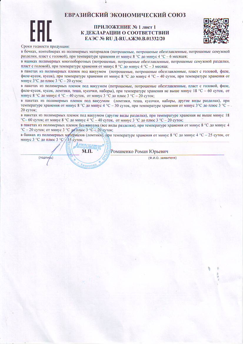 Широкий ассортимент свежемороженой и охлажденной рыбы и морепродуктов, представленный на полках магазинов сопровождается декларациями соответствия.